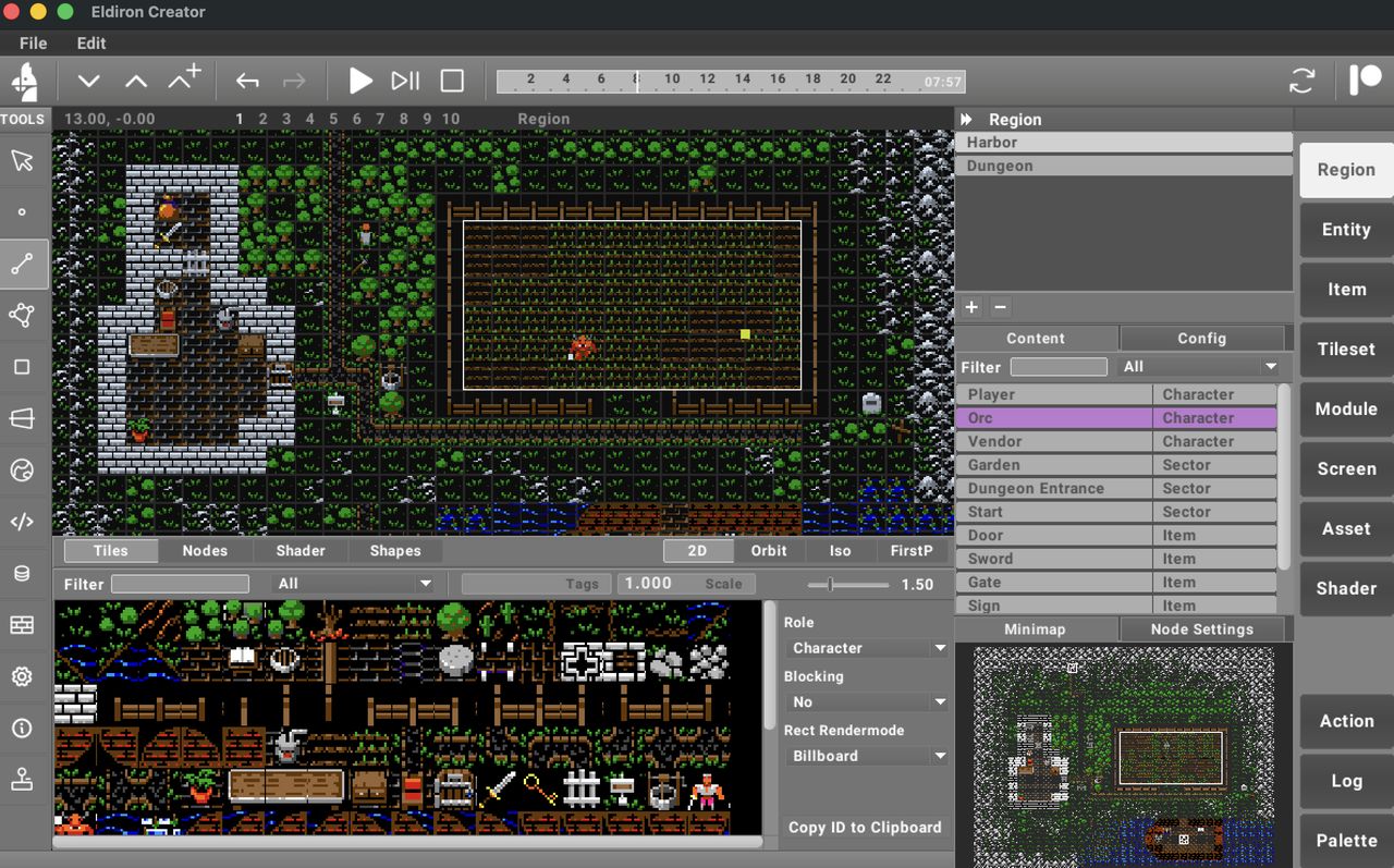 Craft adventures and build your own retro RPG — with powerful world building tools and visual scripting. Eldiron provides powerful tools to make world building intuitive and fun.